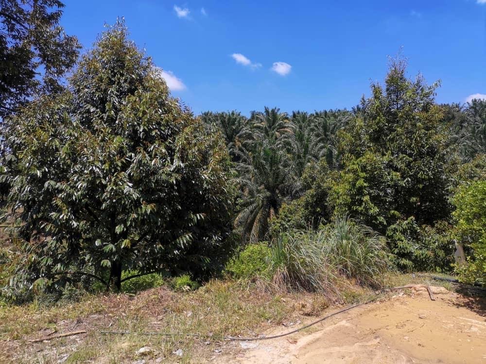 Left: Durian tree once infected with severe canker, after 4 months of BR treatment (leaves are greener, larger and more plentiful.) Right: Normal durian tree without treatment